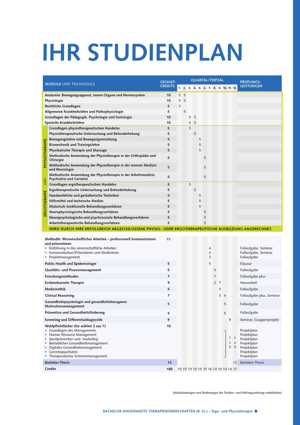 Alle Module und Inhalte des Studiengangs Bachelor Angewandte Therapiewissenschaften