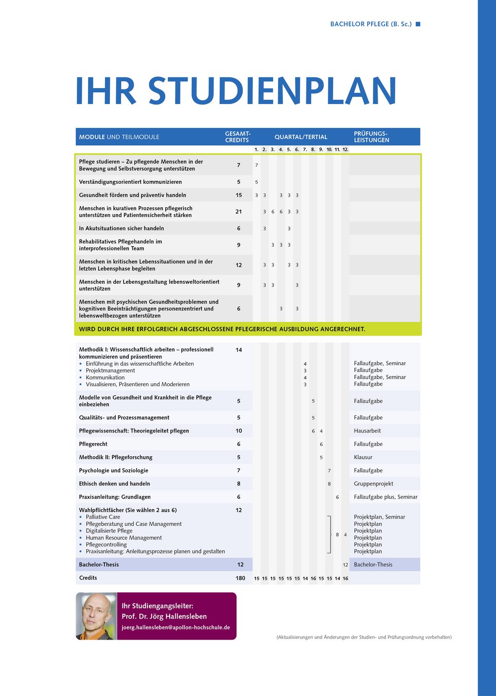 Alle Module und Inhalte des Studiengangs Bachelor Pflege