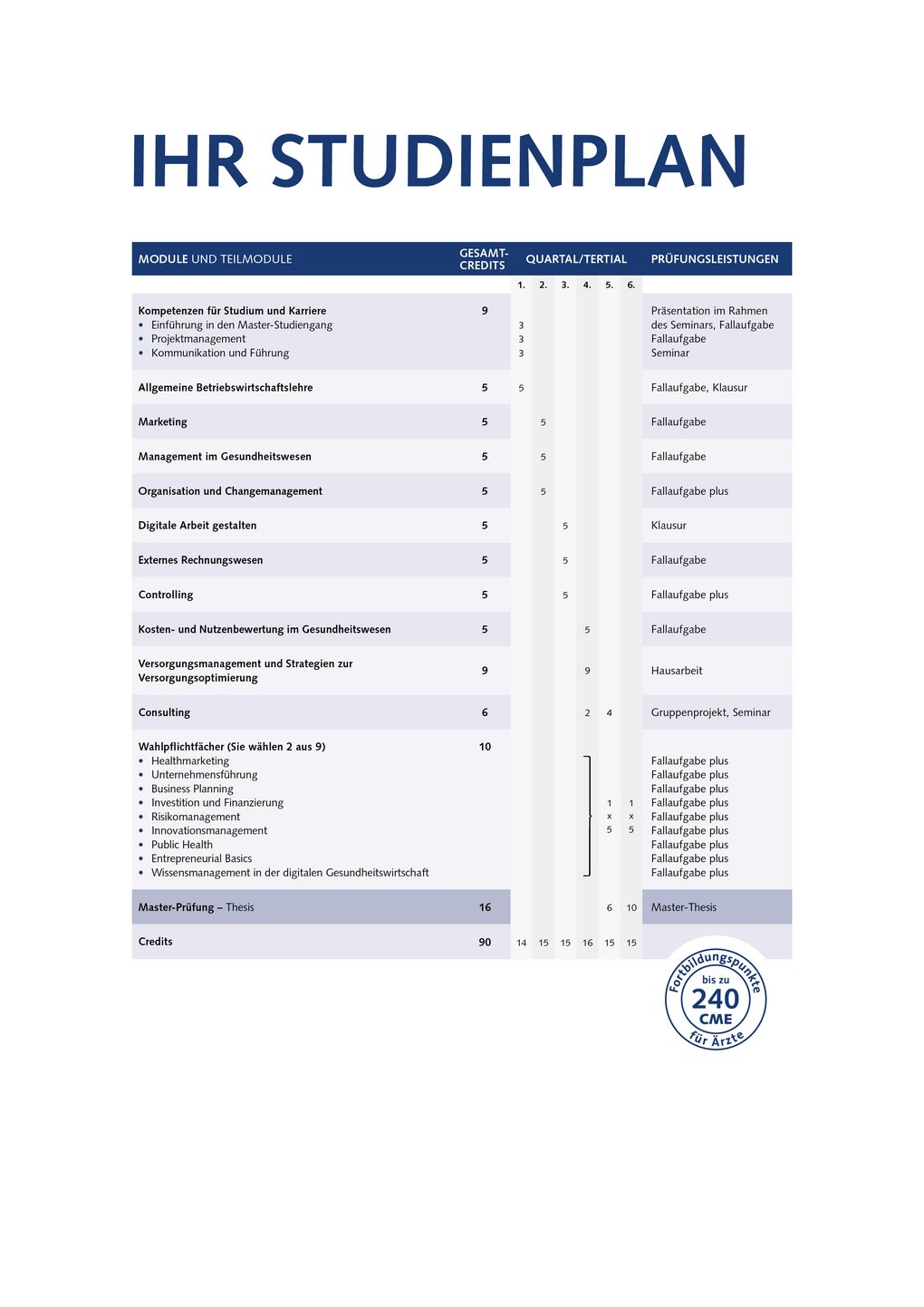 Alle Module und Inhalte des Studiengangs Master Health Management