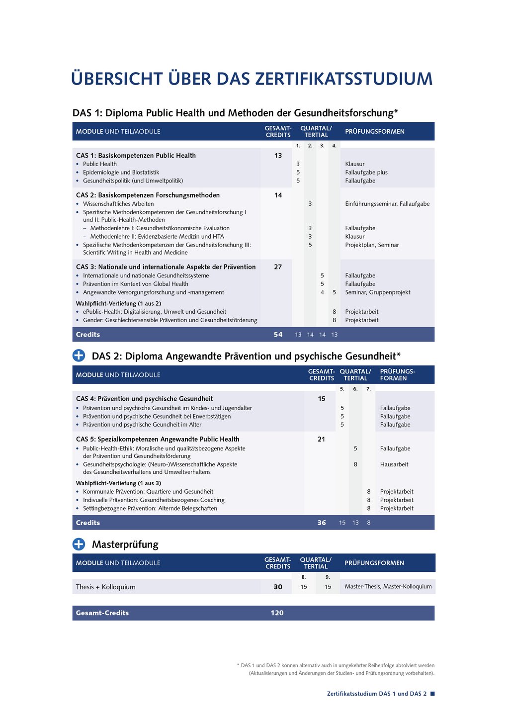 - DAS 1 „Diploma Public Health und Methoden der Gesundheitsforschung“